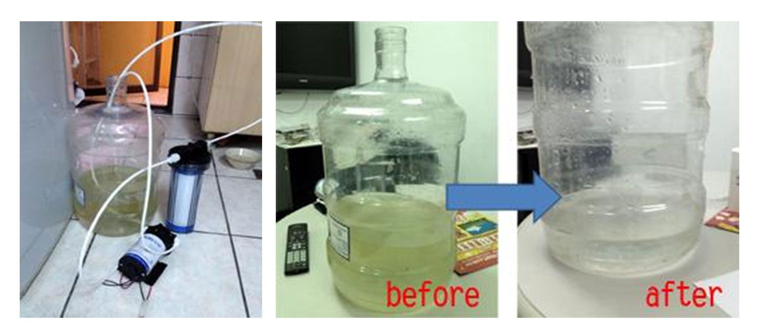 - 從兩圖對照即可明白看出循環後之水變清澈了