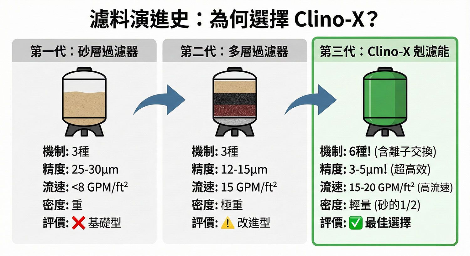 從砂濾到多層濾料,再進化到剋濾能的第三代革命