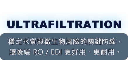 面對地下水或地表水常見的濁度尖峰、顆粒及膠體波動,UF 能提供一致的高品質出水,確保整體系統運行穩定 。