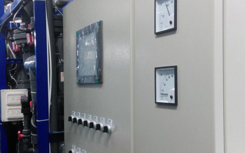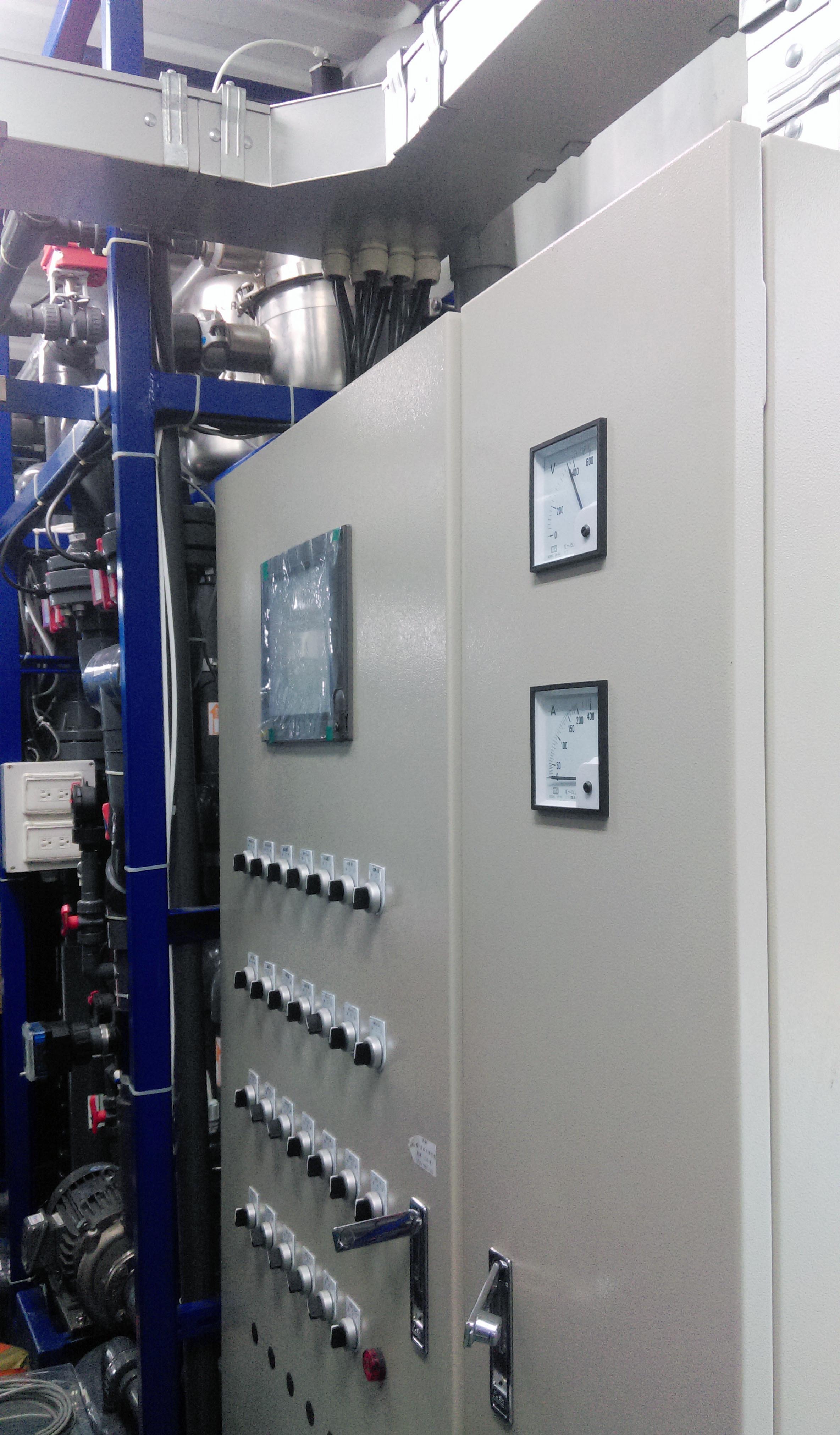 全自動控制盤,控制內容包含啟動、停止、監視全系統作業數據及狀態