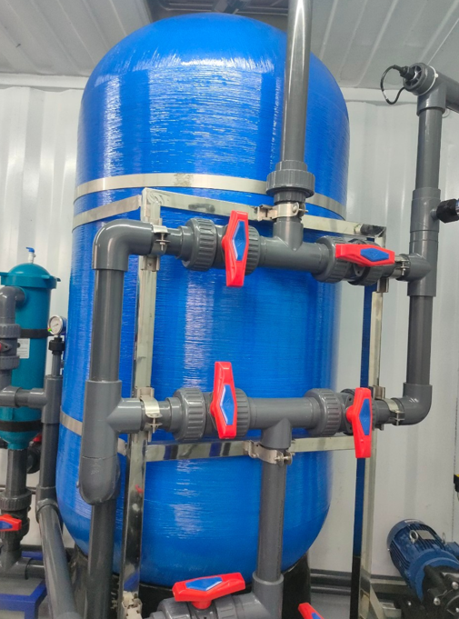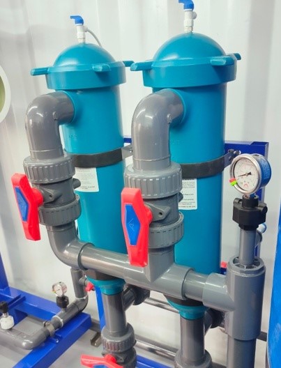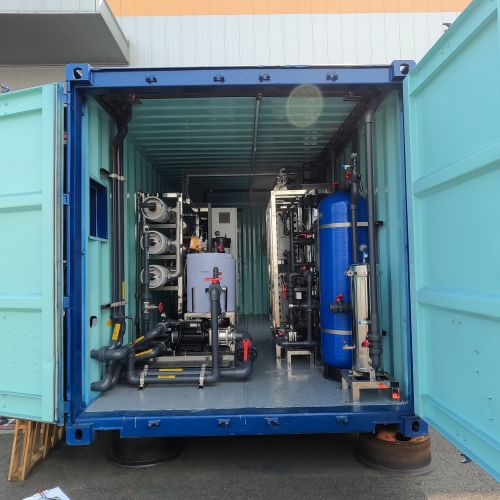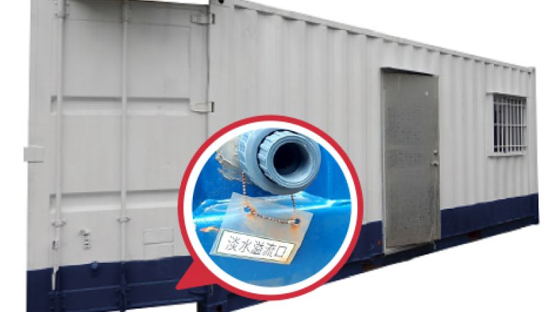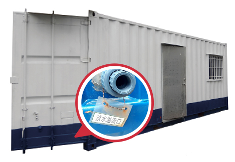 整套系統採 20呎貨櫃模組化設計,可快速運輸、現地安裝與啟用,淡化水符合自來水標準(TDS 500–800 ppm)
