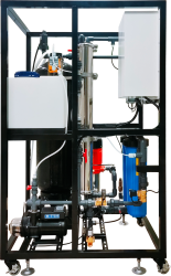 運用低壓高產水量之RO膜、阻垢藥劑及純水沖洗裝置,加上專利控制盒的配置,技術上可突破廢水排放的浪費,使純水回收率達到80%以上,安裝RO膜4040x2產出6000GPD純水。