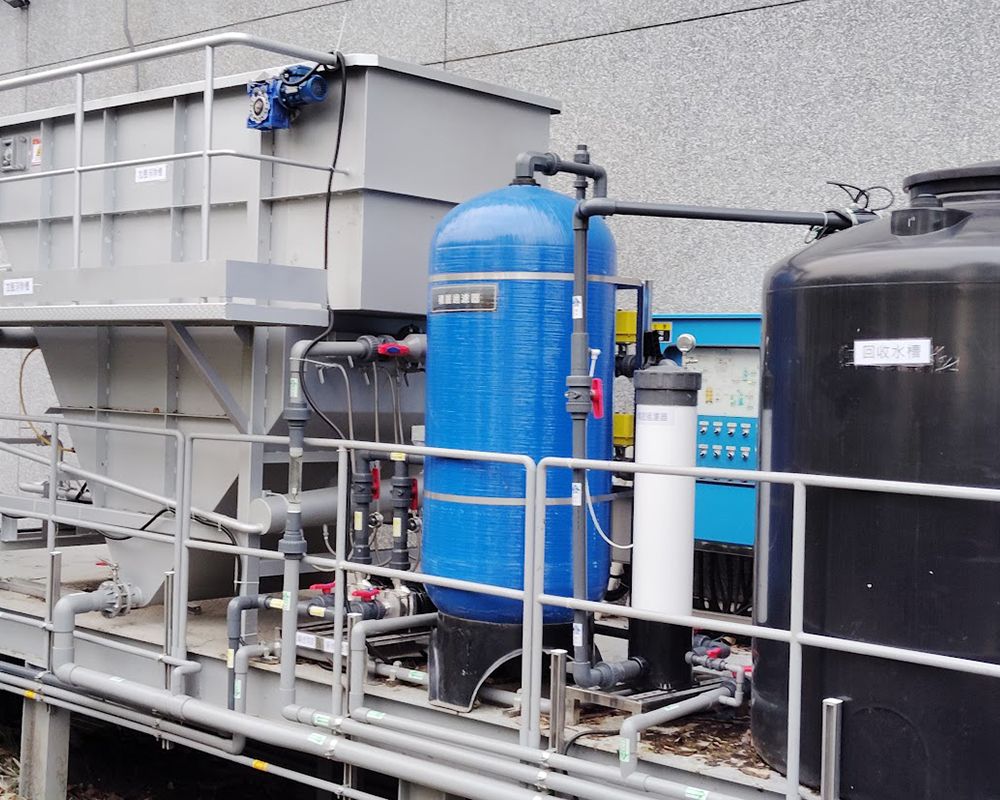 系統包含加壓浮除槽、全自動砂濾槽、精密過濾器、回收水槽與變頻供水設備,並採用PLC智能控制,實現全自動化運行。經過優化,工廠回收水利用率超過50%,廢水處理成本降低30%,同時減少環保壓力與人力操作需求,達到節水減排與永續生產的目標。