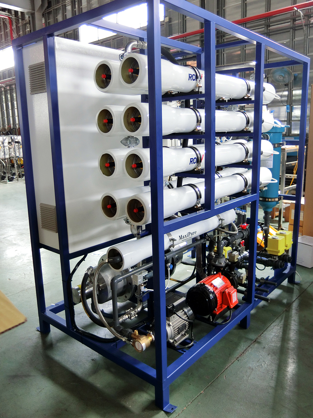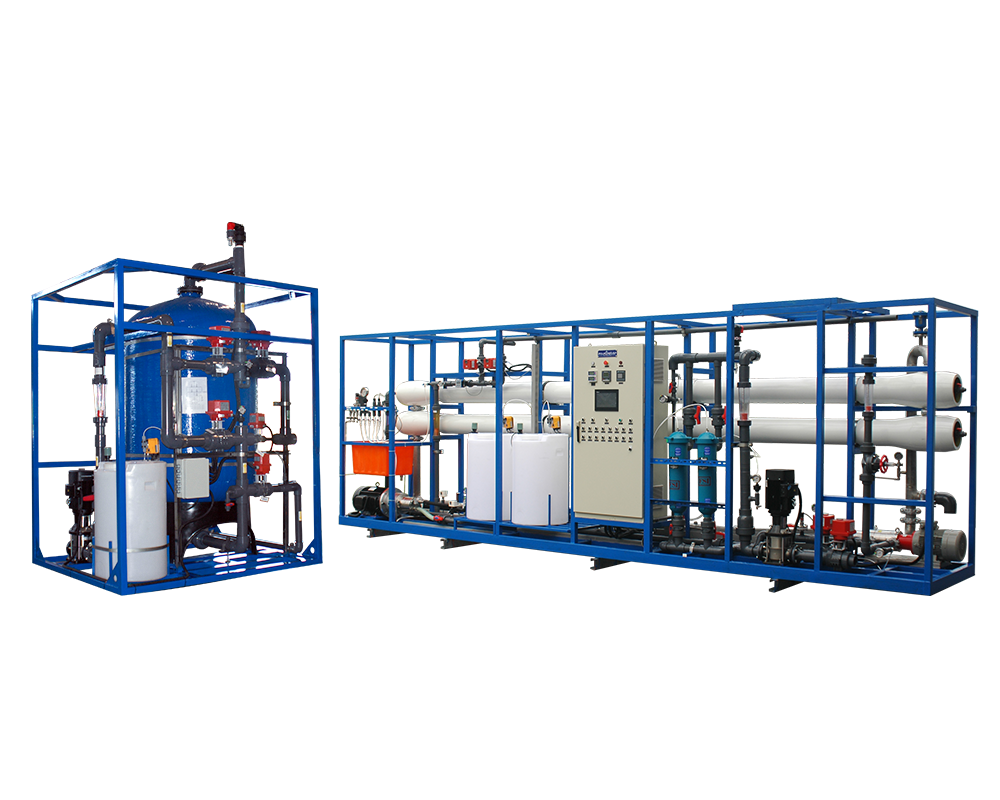 - 自動砂濾與袋式過濾,去除海水中更細微之顆粒、使水質達SDI(污泥密度指標)小於5之需求,確保RO膜不被阻塞。